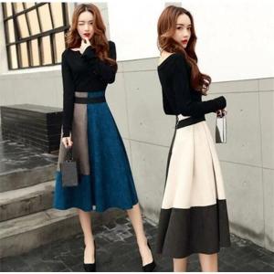 楽天市場 新作 春秋 Ol 色切り替え Vネック ワンピース レディース フェイクレイヤード ワンピース シルエット ファッション 仕事用 キューエス