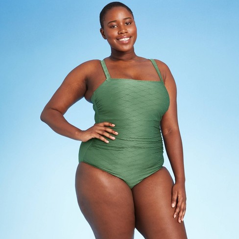 Women S Plus Size Basket Weave Classic One Piece Swimsuit Kona Sol Green 14w Target